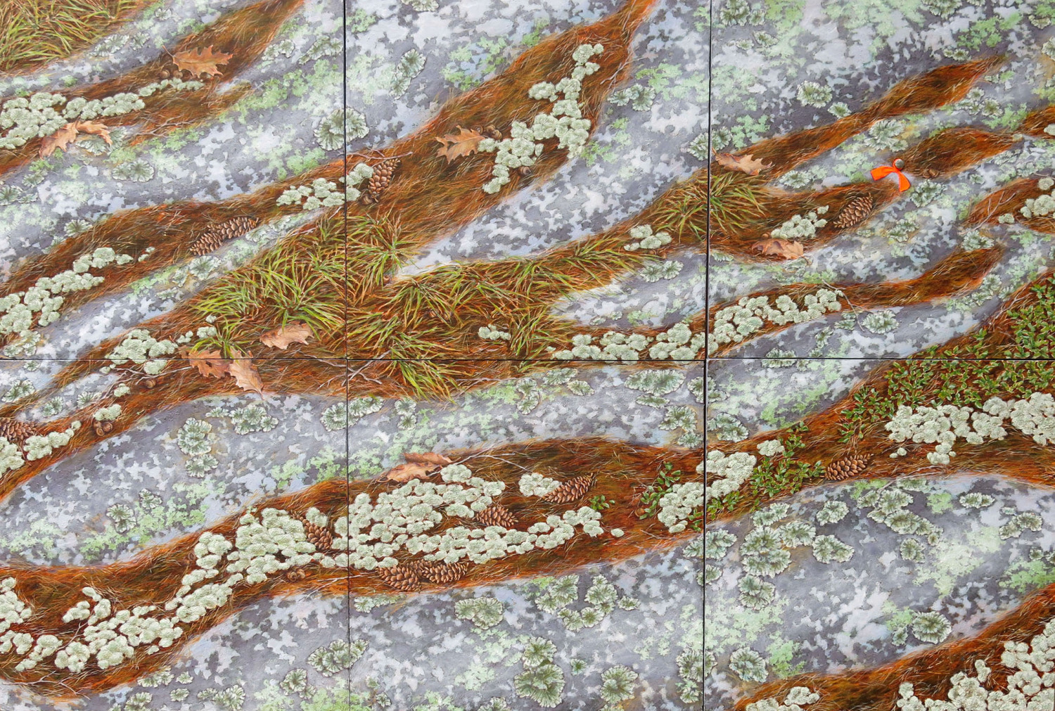 Adrian’s art is informed by science and by knowledge garnered from on-site explorations and investigations in wilderness settings. Her work is also deeply influenced by the study of Indigenous environmental philosophies. Working with both found natural materials and manufactured mediums, she creates visual commentaries on the wonders of the natural world to promote reflection on human-nature connectedness, and to convey a message of optimism for the future.