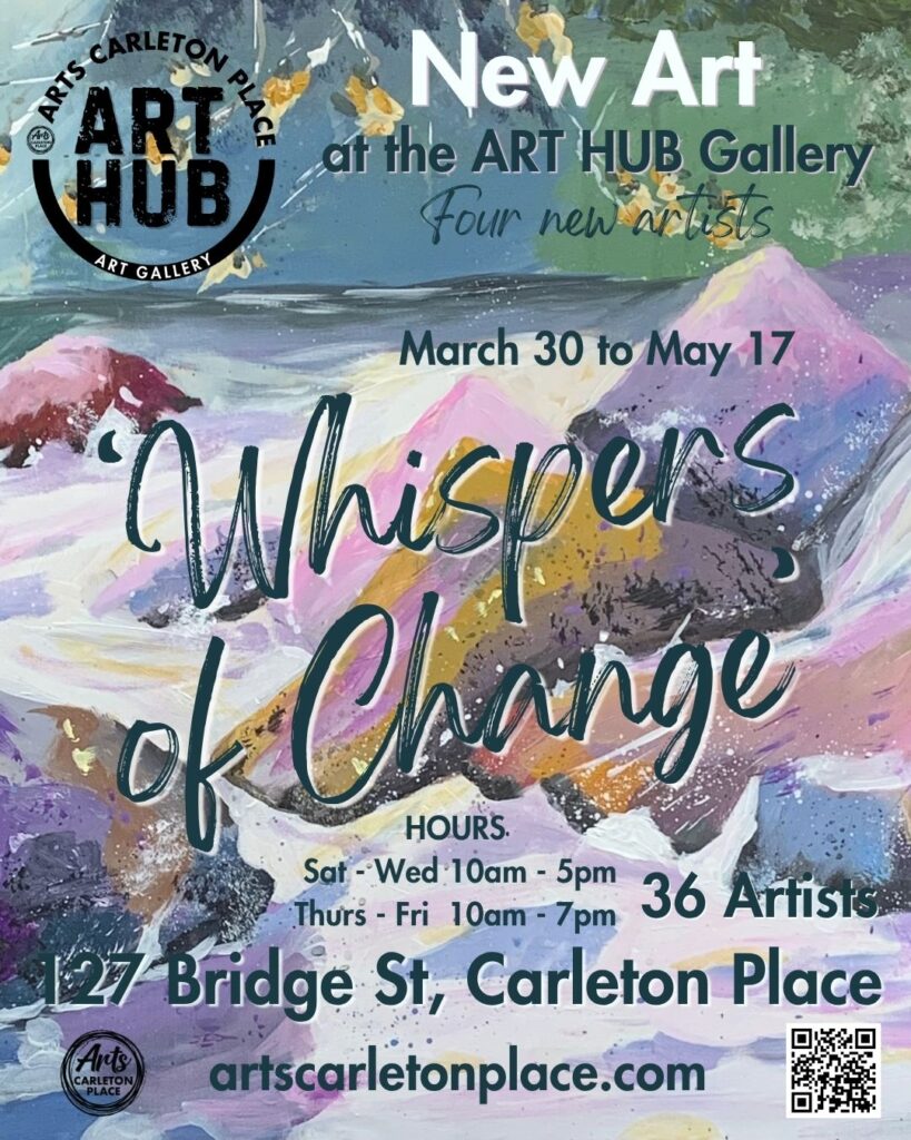 The Arts Carleton Place Art Hub Gallery is at 127 Bridge St, in Carleton Place. The Art Hub Gallery provides a place for ACP members to sell their artwork on an on-going basis. This members-run art store is open to the public 7 days a week.