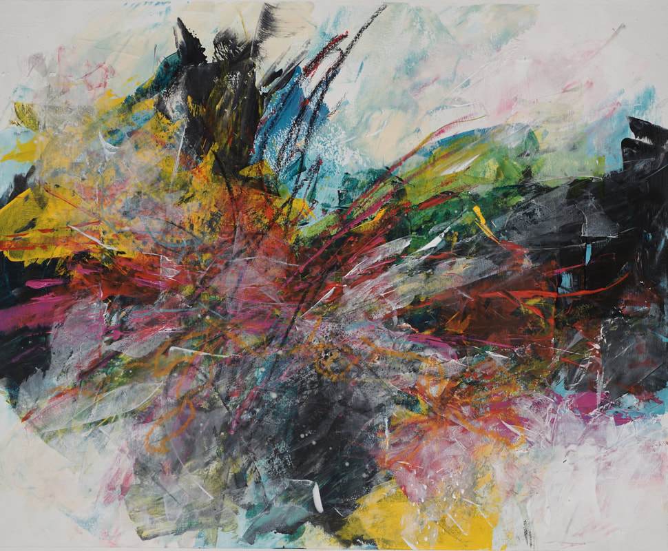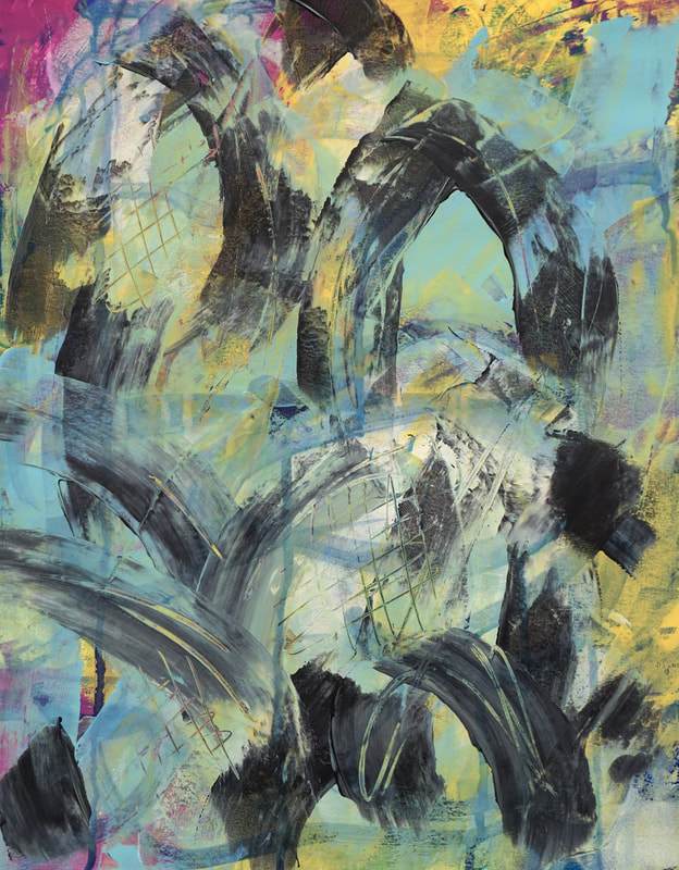 Catherine Gutsche earned her honours BFA (Bachelor of Fine Art) at York University. She creates abstracted compositions on paper, wood panels and canvas alluding to forms in nature, sound and light, exploring colour, line, rhythm, and texture – driven by a need to engage the mind. Her art is abstract but rooted in real experiences – what she sees and how moments make her feel. She works without sketches, choosing instead to let memory and emotion guide the process. Each painting emerges as a dialogue with the canvas, where marks and colour build on one another to suggest a story without being literal. It is less about representation and more about capturing a sense of place and the feelings carried within it.