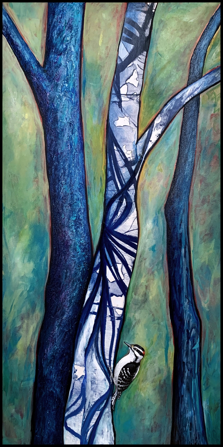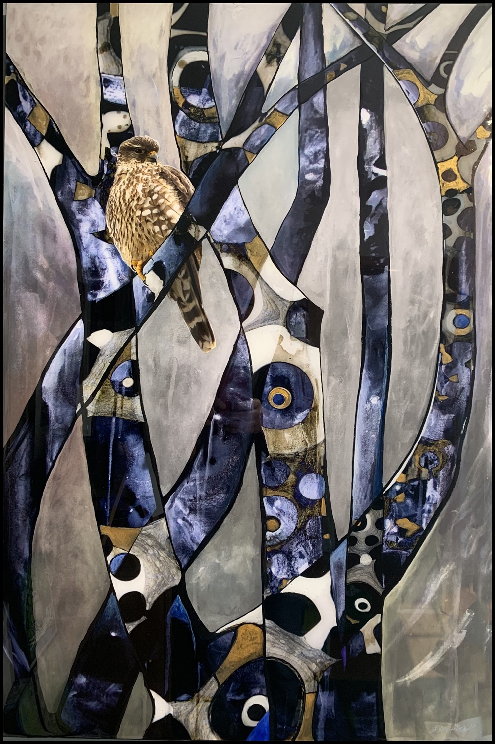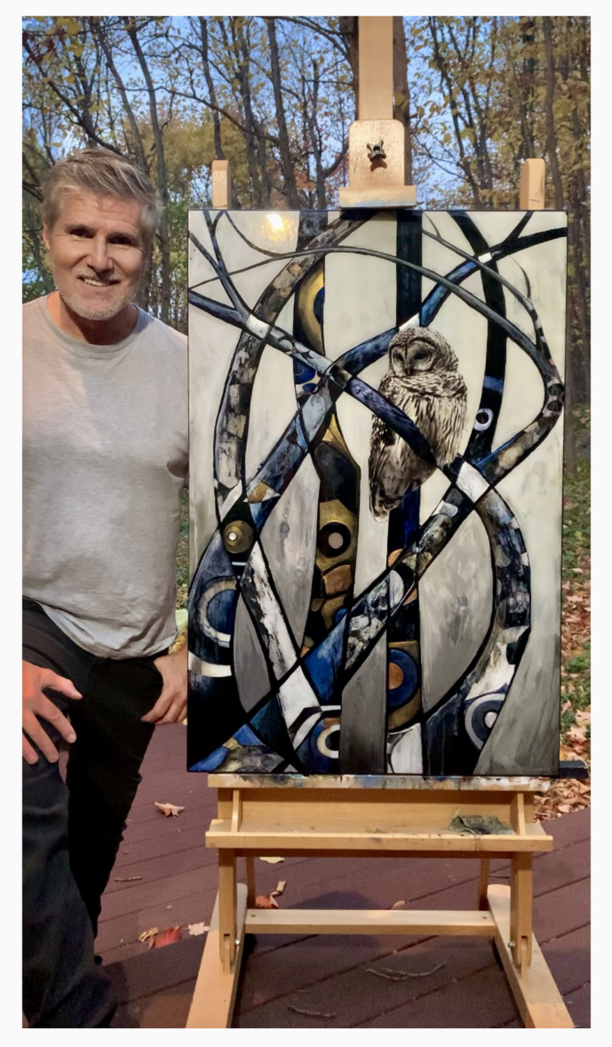 Graham Mastersmith is a painter, photographer, and printmaker with a deep passion for ornithology. He lives in Carp, Ontario, on the ridge, next to four hundred acres of forest, and feels most at home surrounded by trees. Graham is captivated by the intricate beauty and fragility of the natural world, which is evident in his unique mixed-media artworks that often feature birds. His art showcases a distinctive blend of various influences and styles. With a background in printmaking, much of his work incorporates layered images, photography, washes of colour, patterns, and textures. By juxtaposing realism with abstraction in his paintings, Graham aims to provide a fresh perspective on trees, birds, and the natural world.