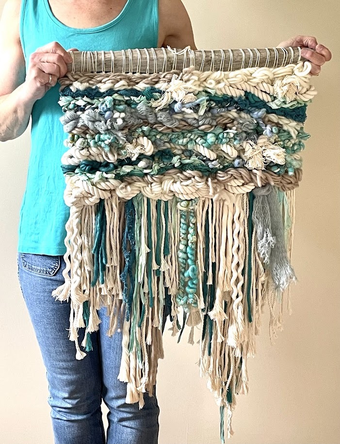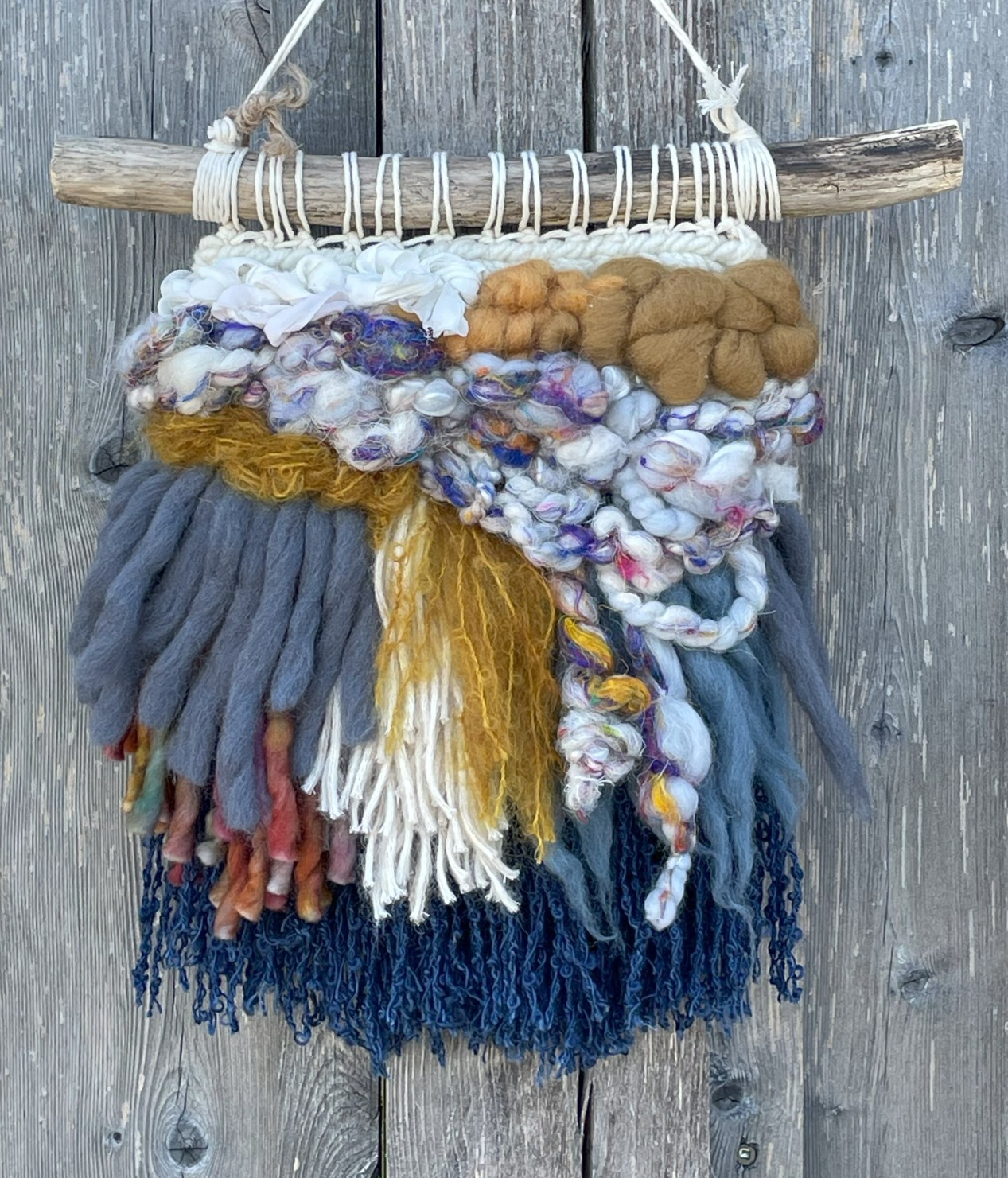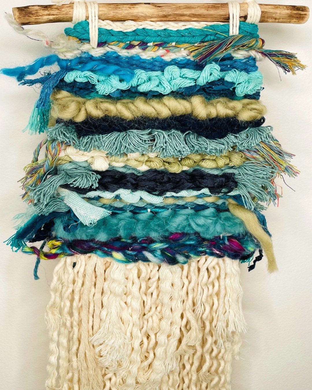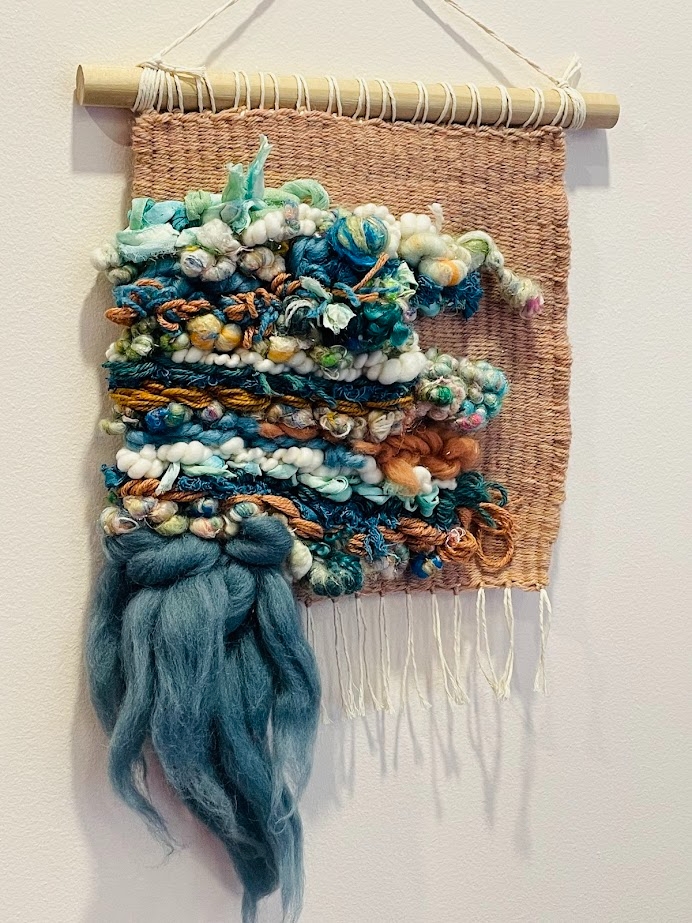 Jackie incorporates traditional hand weaving techniques to create modern fibre art for her small business Maple Weaves. She creates compositions that have a vibrancy and playfulness to them. She creates as she weaves so her designs are free flowing, spontaneous and unique.
