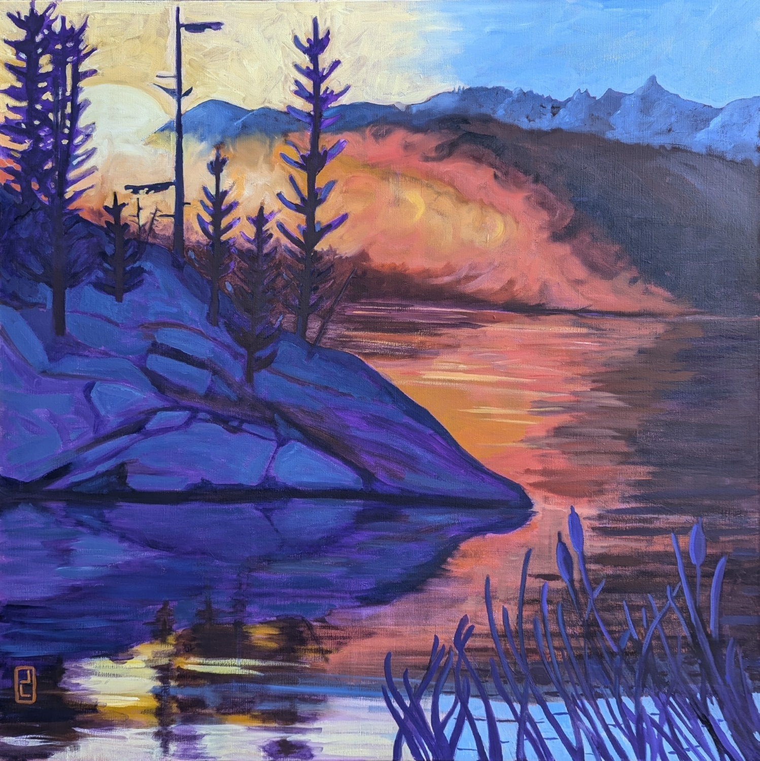 Jane travels regularly and takes inspiration from many camping trips to the nearby Algonquin Park, Quebec, PEI, Bay of Fundy Cape Breton and Nova Scotia and last summer she visited the west coast for the first time. The awe of our wonderful country is a never ending inspiration and she will continue to paint and grow as an artist.