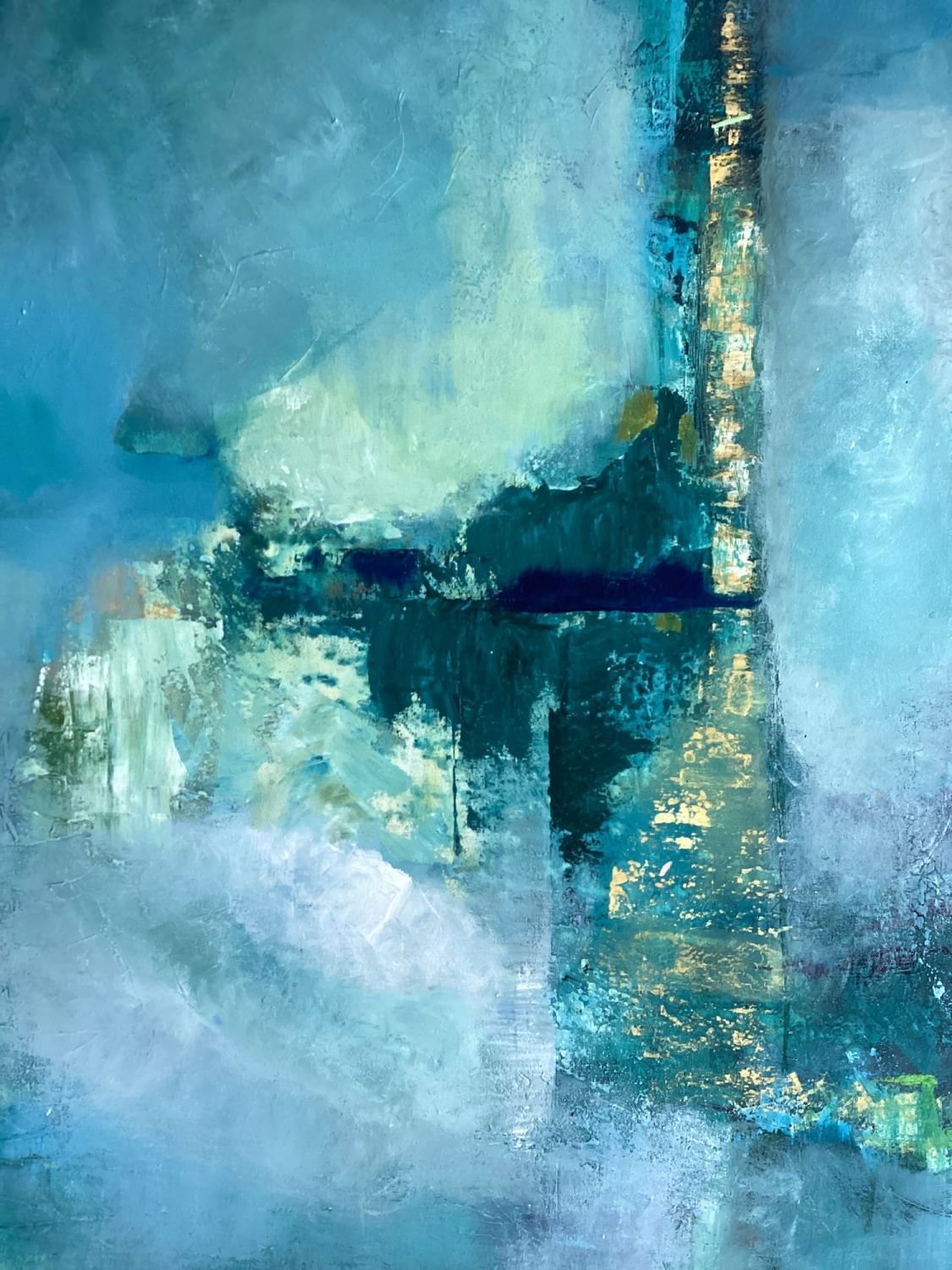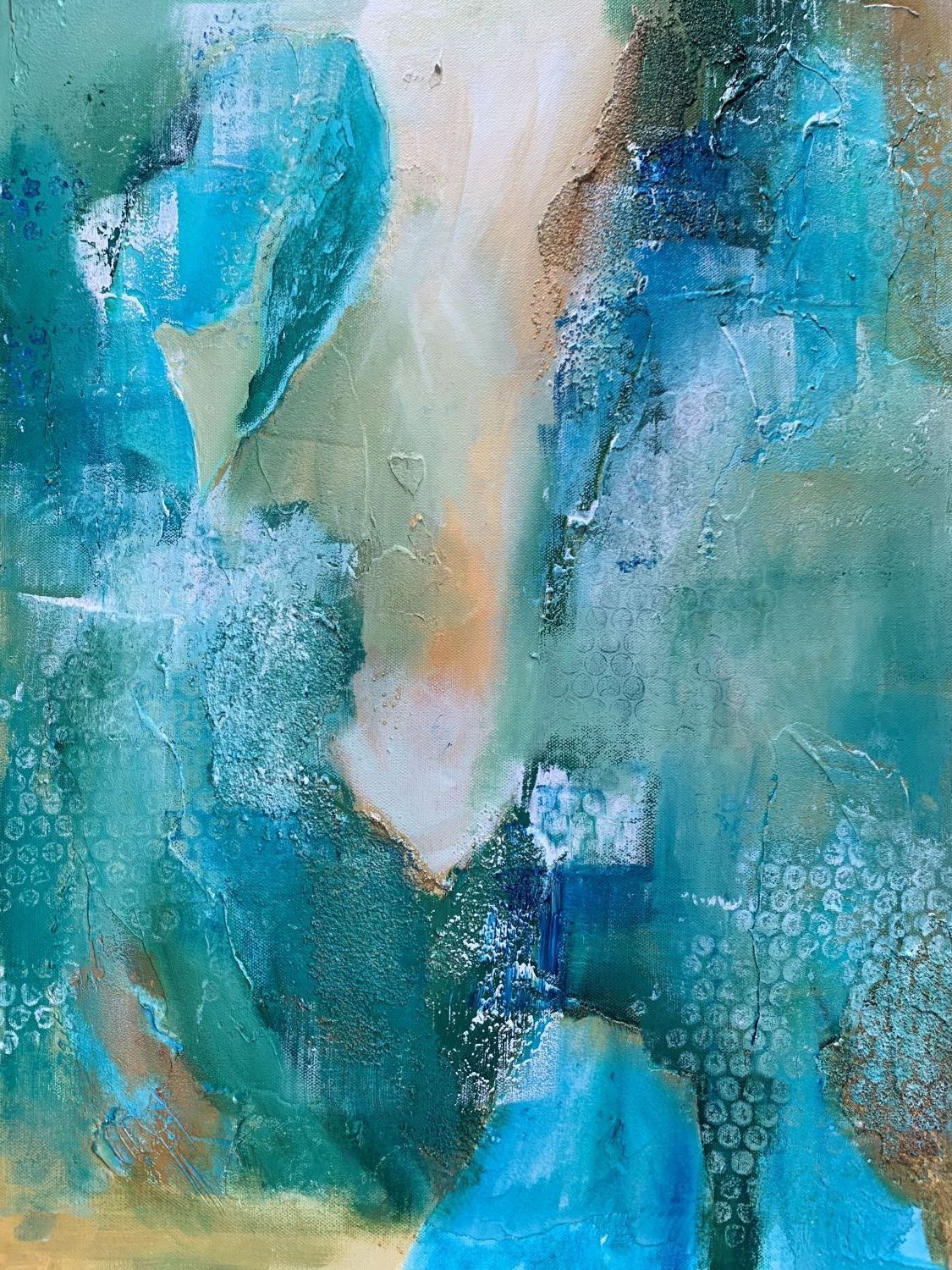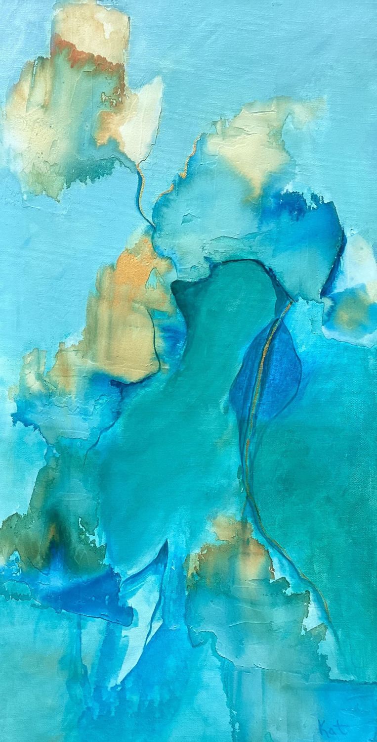 Kat‘s greatest pleasure is creating abstract inspired by nature. Her love of blues and greens comes from her fascination with the ocean and sky and while she experiments with all colours, she returns time and time again to these colours of nature. She uses vivid colour or misty, soft combinations. Kat has been painting for over 20 years and has taken numerous workshops, including mixed media, water colour pencils, printmaking and encaustic. She experiments with gel mediums, gel plating and just about anything to add texture and interest.