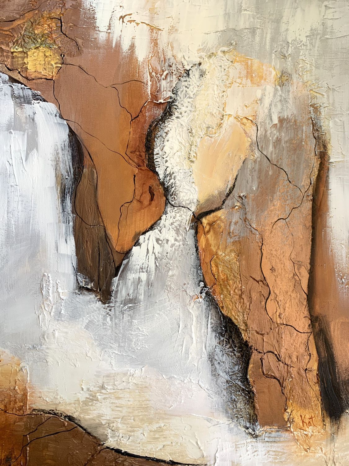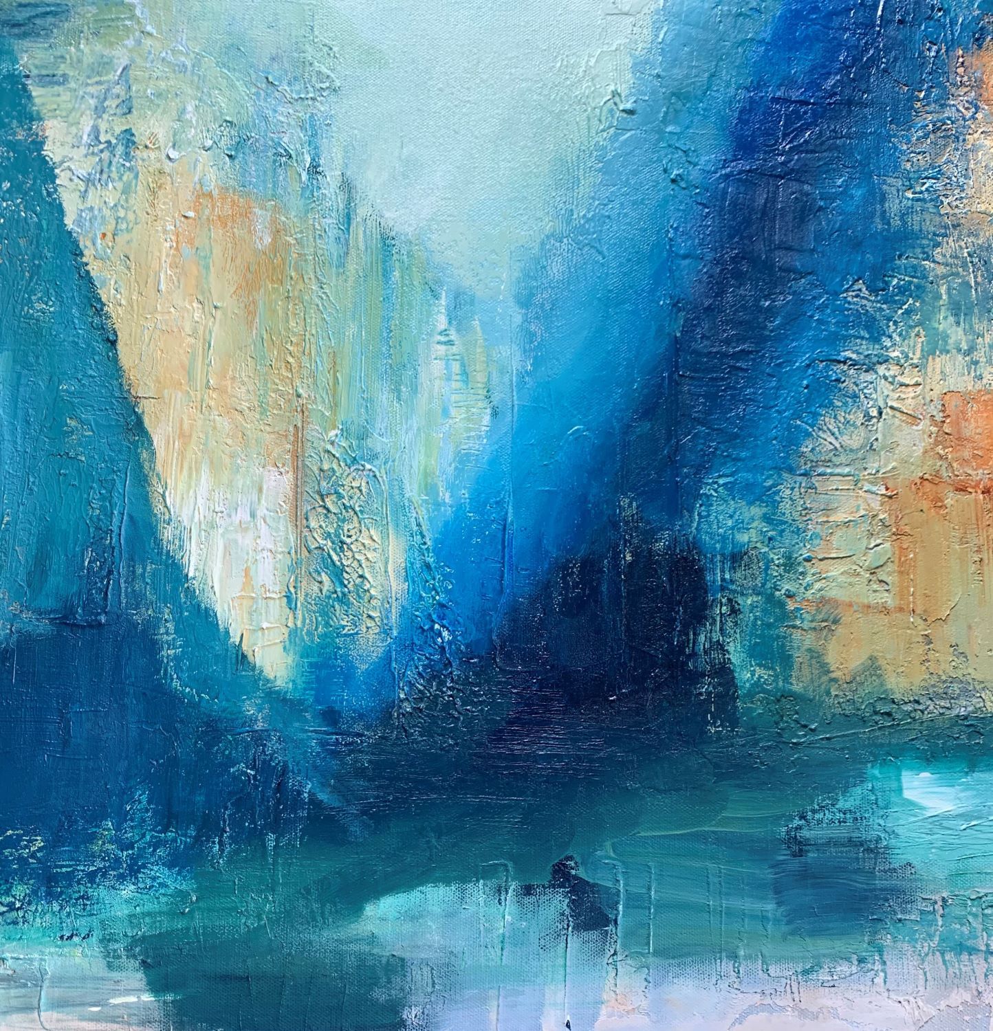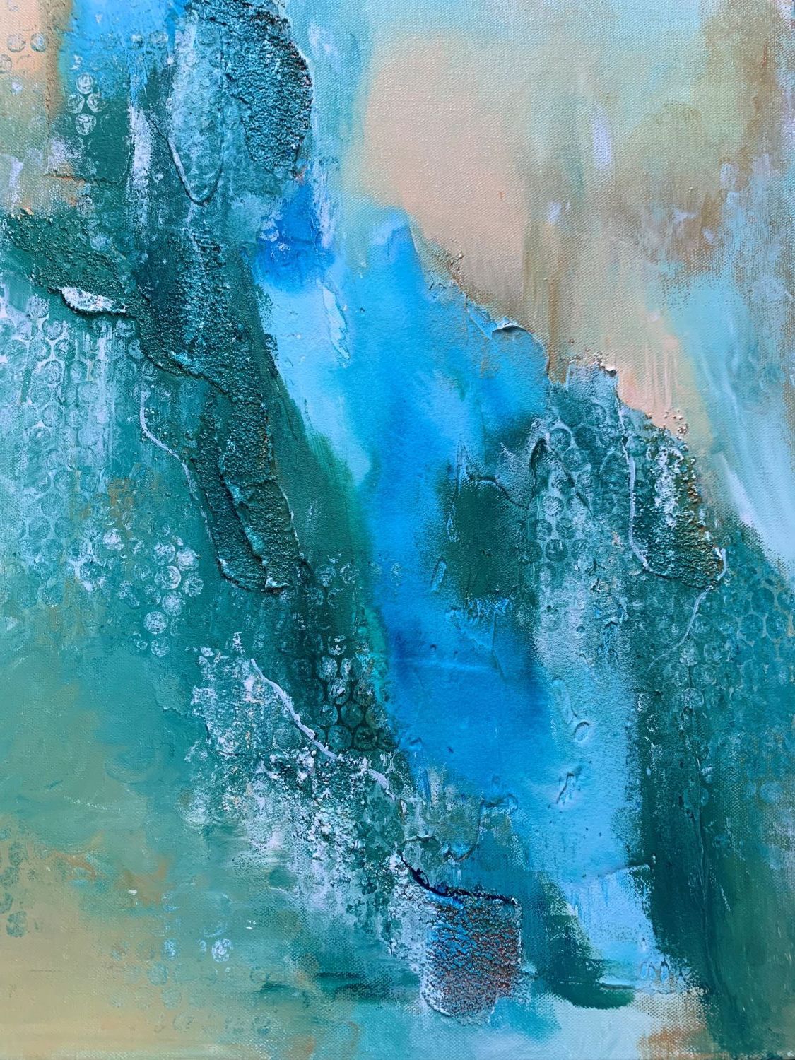 Kat‘s greatest pleasure is creating abstract inspired by nature. Her love of blues and greens comes from her fascination with the ocean and sky and while she experiments with all colours, she returns time and time again to these colours of nature. She uses vivid colour or misty, soft combinations. Kat has been painting for over 20 years and has taken numerous workshops, including mixed media, water colour pencils, printmaking and encaustic. She experiments with gel mediums, gel plating and just about anything to add texture and interest.