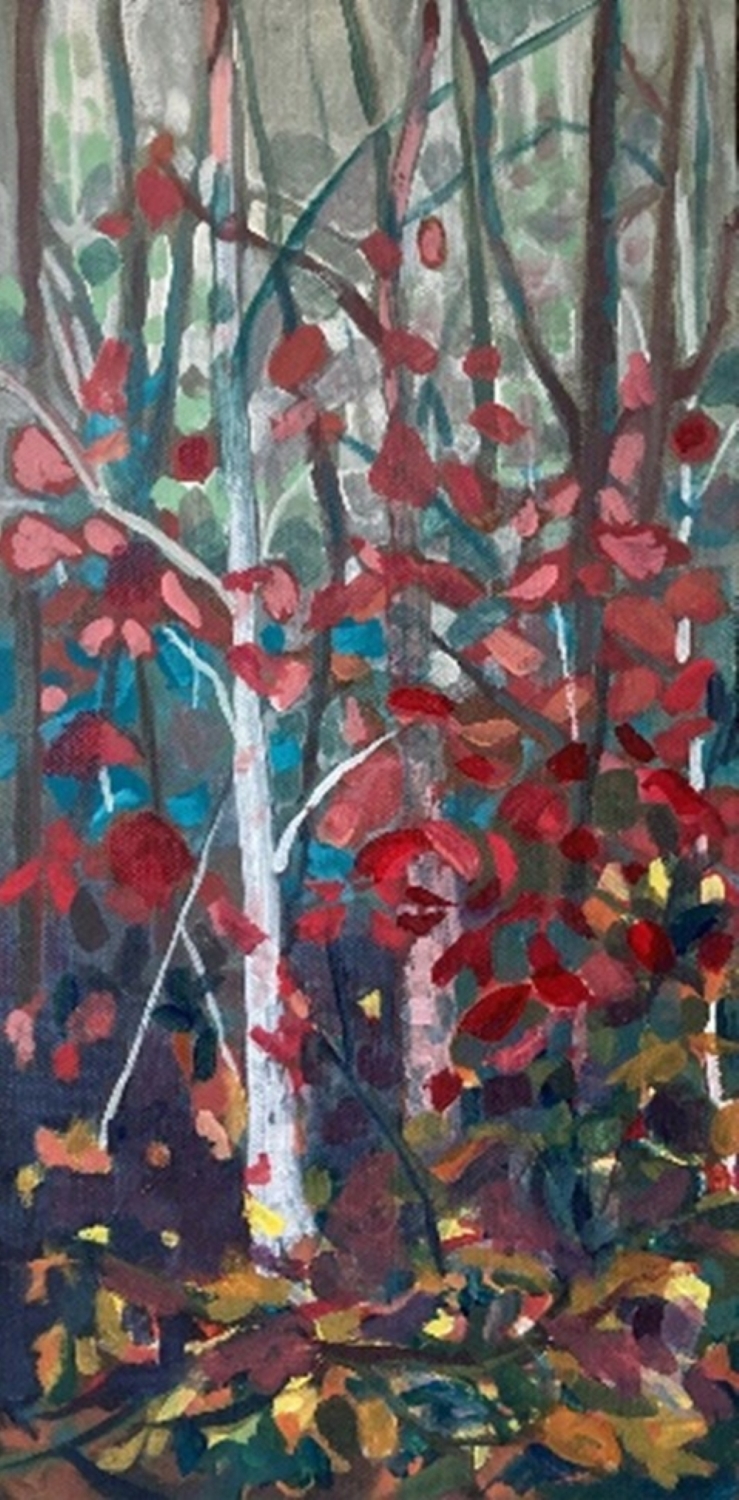 I often travel and tour around our country roads and the scenic landscapes and local heritage are the roots of my artistic life. My paintings are the result of the sense of peace and nostalgia I get from the simple beauty of nature. My bold expressive brush strokes, and vibrant yet subdued colour palette and use of negative painting are a few of the details that bring life and drama to my paintings. My landscape and floral paintings are uplifting to paint and I strive to translate my joy and wonder in all my work.