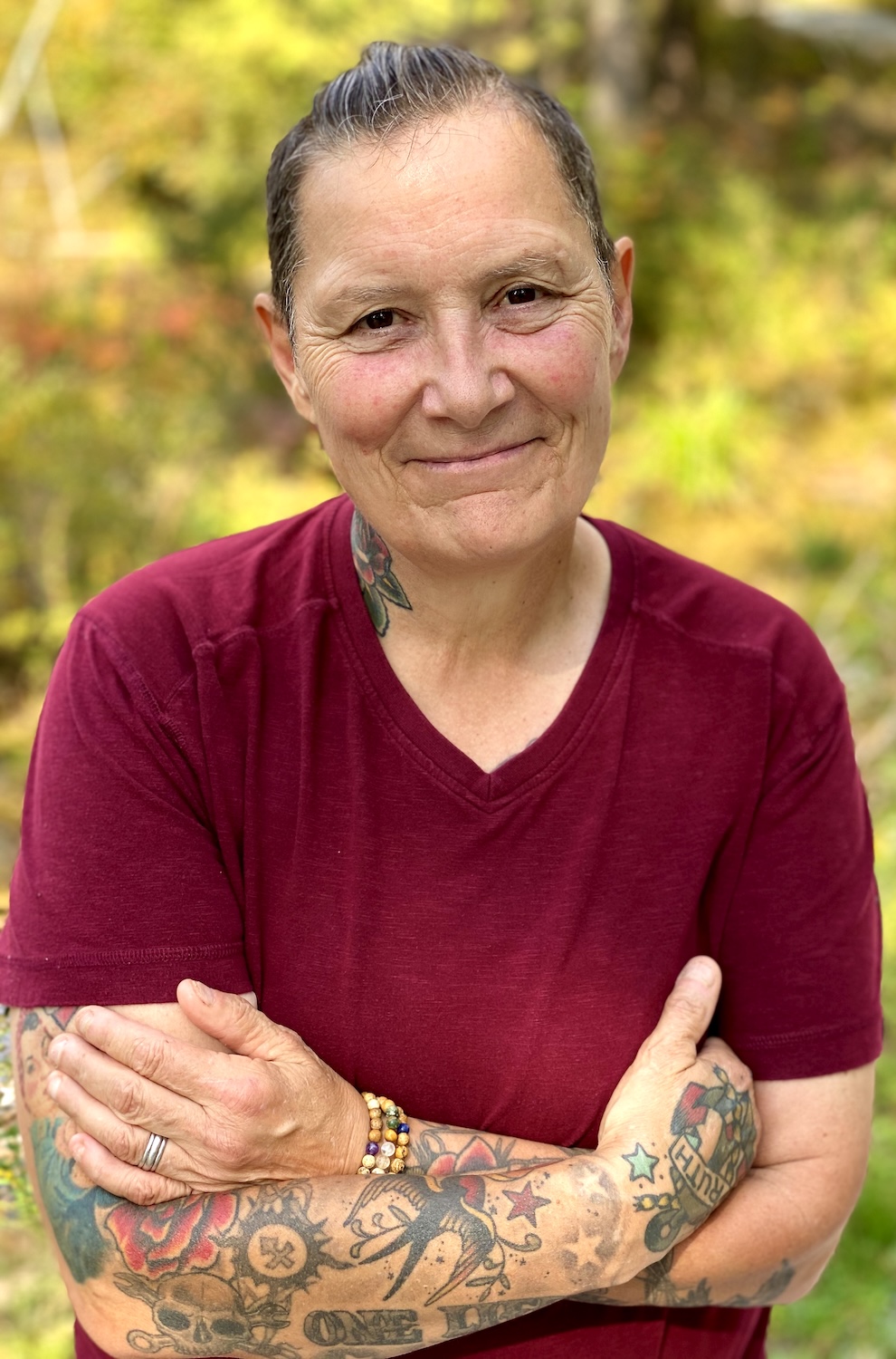 Tradeswoman, artist, and teacher Lorrie Potvin, a queerishly Two-Spirited Citizen of the Métis Nation of Ontario, has worked and taught in the trades for over 30 years. Potvin holds an Inter-Provincial Red Seal in Auto Body Repair and Refinishing from Algonquin College as well as a diploma in Technological Education from the Faculty of Education, Queen’s University.