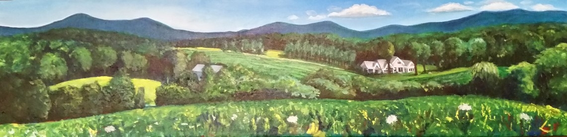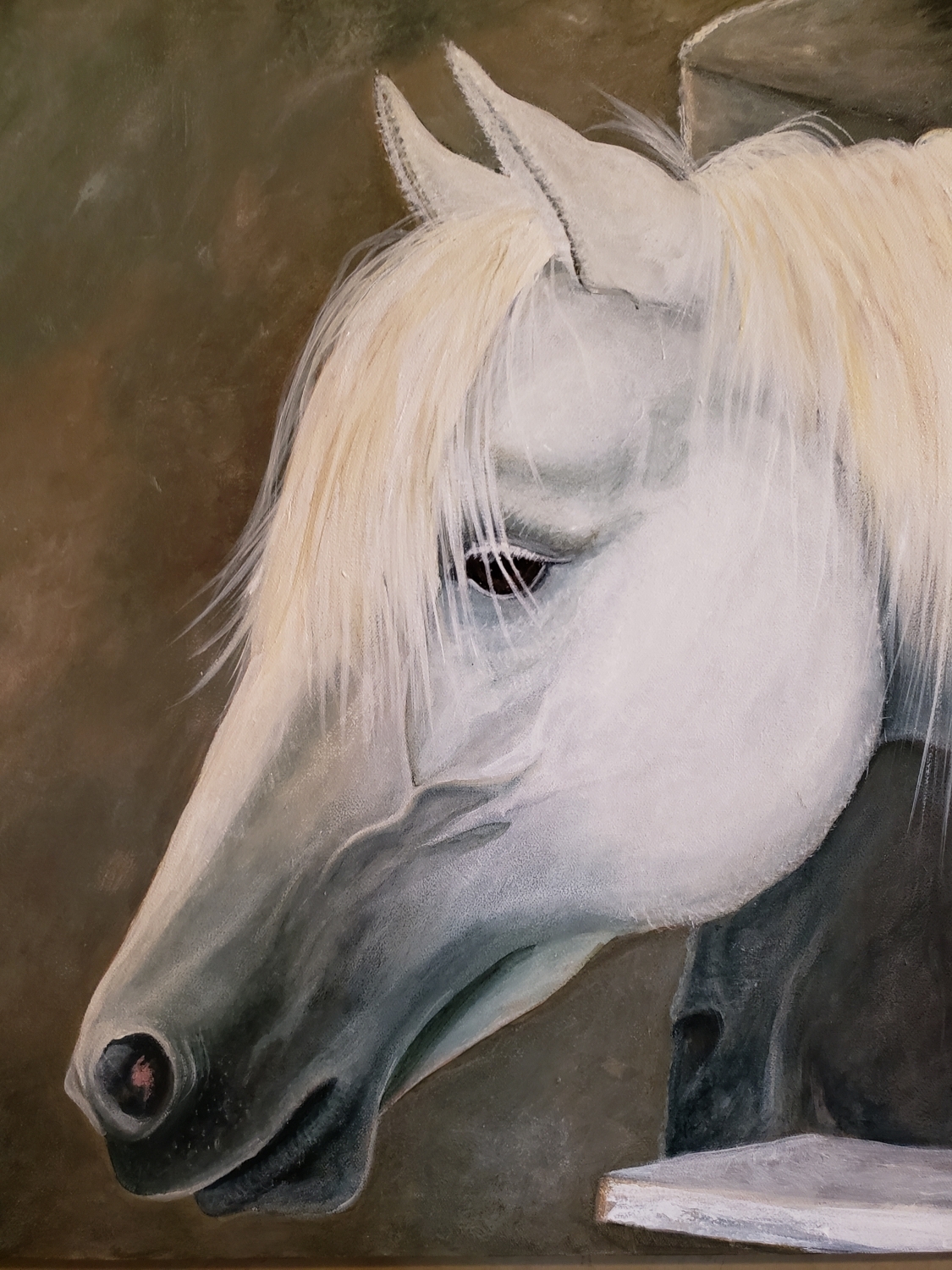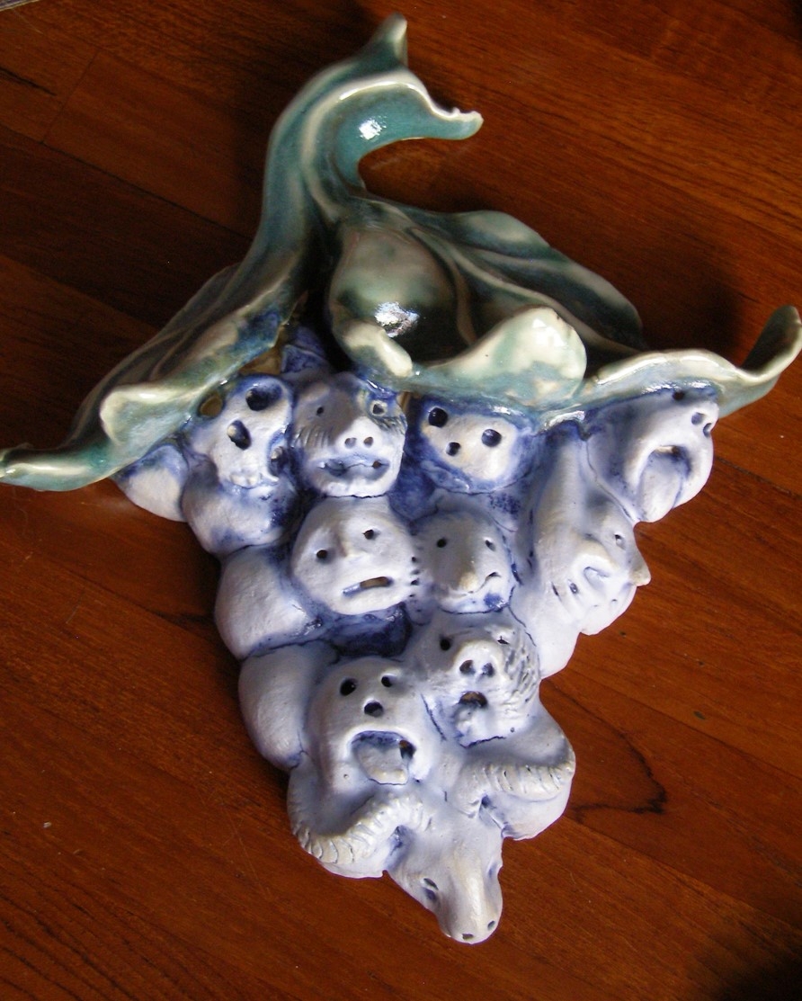 MJ has experimented with a variety of mediums over the years, and has produced works in acrylic, watercolour, pen & ink, oils, fiberglass, metal signs, pottery, and large murals.
