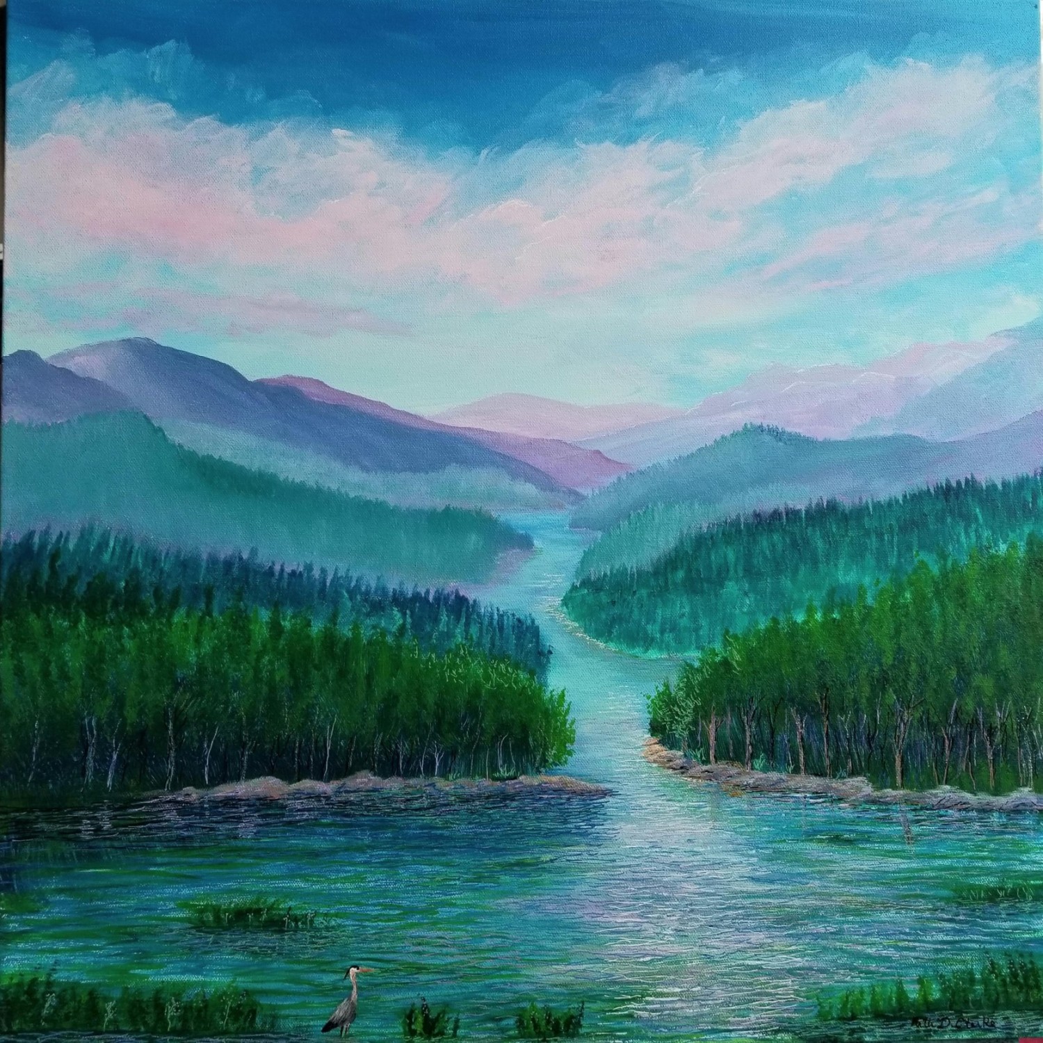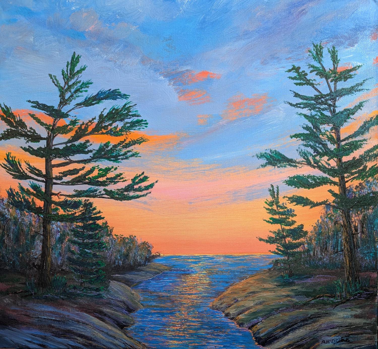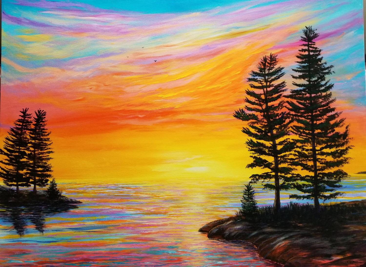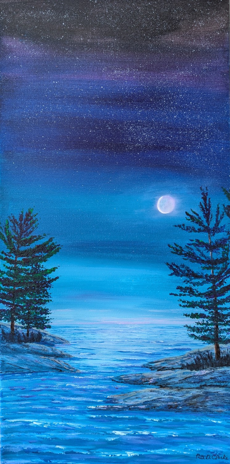 Patti was a primary teacher for over thirty years and is now semi-retired, teaching Kindergarten part-time and enjoying family life and painting. She is self-taught and enjoys expressing her love of creation through acrylic painting. She especially loves to capture the light in the sky and water. Patti has been painting all her life but has been able to focus much more time on painting in recent years, practicing water and skyscapes. She hopes to share the peace that she feels with others through her art.