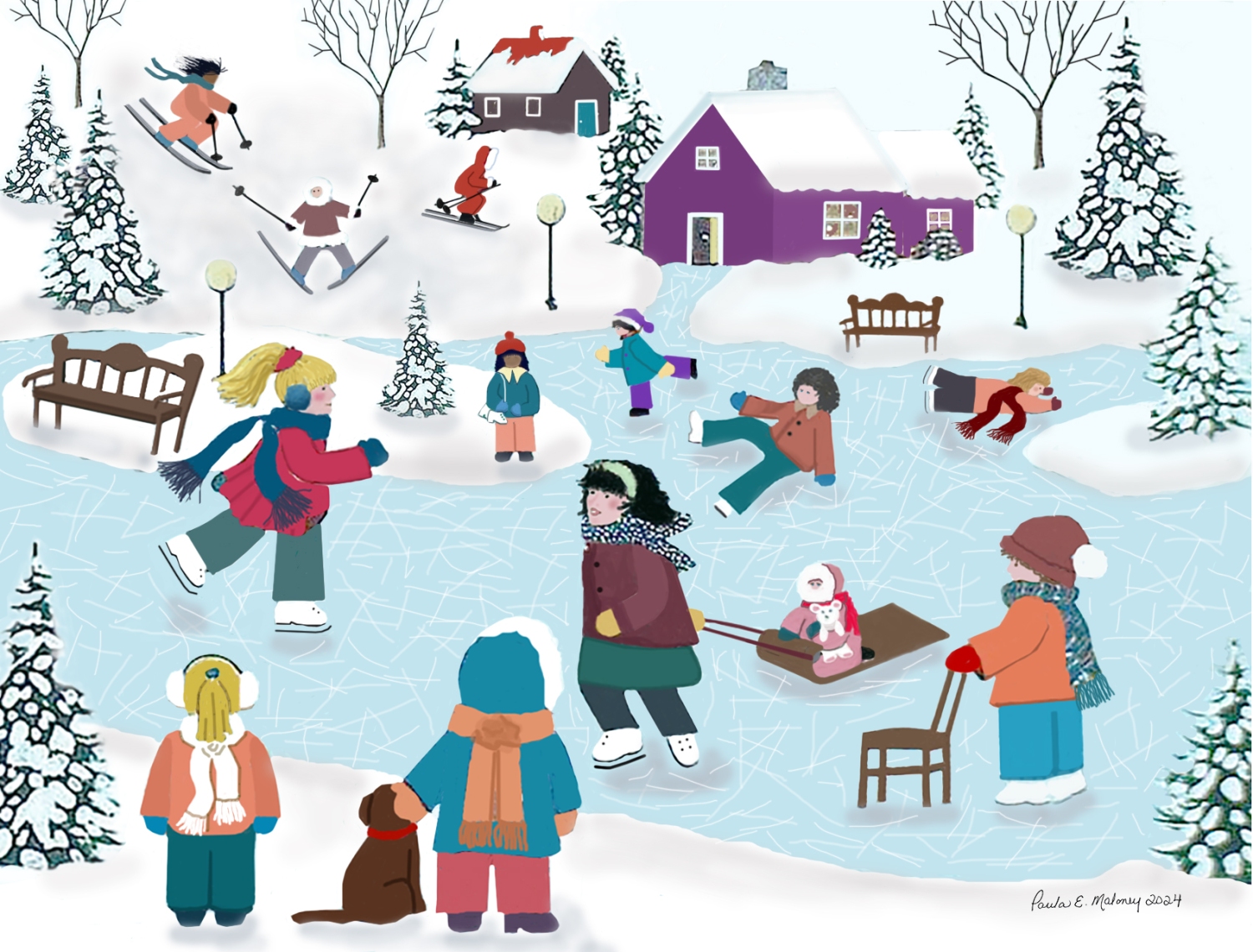 She started painting with acrylics in 1999 when her sister asked her to illustrate a children’s book she was writing called “Icicles to Miracles”, based on the ice storm of 1998 which hit hard in Ontario and Quebec. She’s been painting off and on ever since. Paula also works with pen and ink, pencil and coloured pencil.